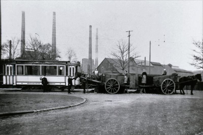 Für diese Transporte kamen Selbstentladewagen zum Einsatz: Die Kohle wurde an der Haltestelle Rüdinghauserstraße abgekippt und dann mit Pferdefuhrwerken zu den Hüttenbetrieben transportiert.
